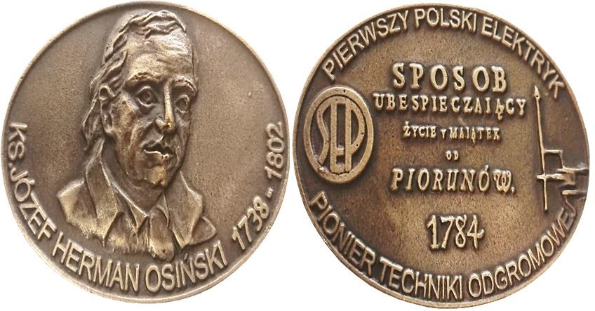 - Ksiądz Józef Herman Osiński był zakonnikiem - pijarem, wybitną postacią, zasłużoną dla nauki i polskiego szkolnictwa dynamicznie rozwijającego się w drugiej połowie XVIII wieku. Wykazał się nie tylko zainteresowania naukami ścisłymi, ale również praktycznymi działaniami, które wpływały na polepszenie warunków bytowania ludności i umysłowego postępu. Jako wnikliwy obserwator był autorem pionierskich dzieł, z których najważniejszym jest „Sposob Ubezpieczaiący Życie y Maiątek od Piorunów”, które wydane zostało w 1784 roku w Warszawie. Uważany jest on za pierwszego polskiego elektryka, a jego dzieło nazywane jest pierwszym polskim podręcznikiem elektrotechniki.